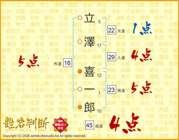 立澤喜一郎さんの総運は45画の4点!