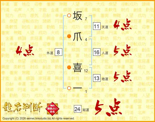 坂爪喜一さんの天運は11画の4点!