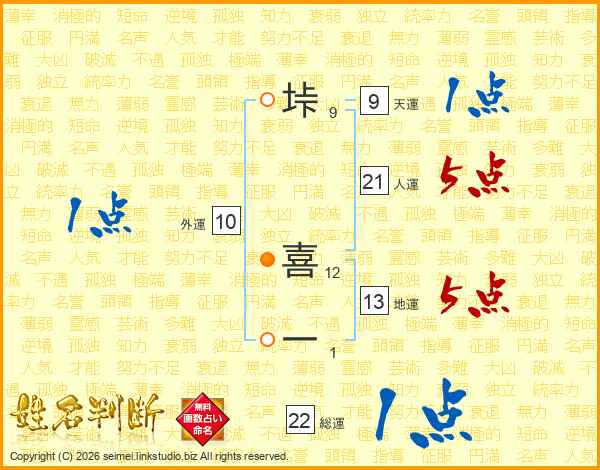 垰喜一さんの総運は22画の1点!