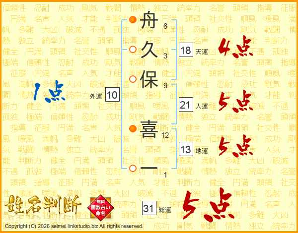 舟久保喜一さんの総運は31画の5点!