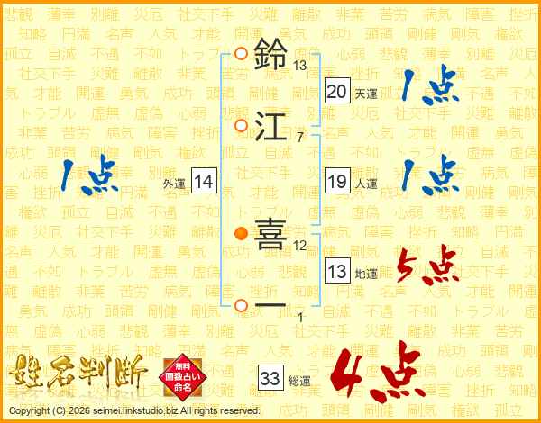 鈴江喜一さんの総運は33画の4点!
