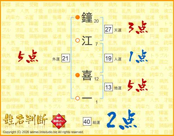鐘江喜一さんの天運は27画の3点!
