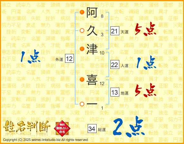 阿久津喜一さんの天運は21画の5点!