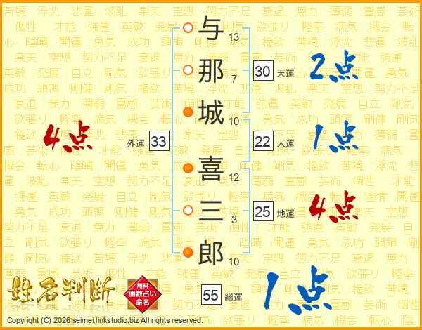 与那城喜三郎さんの外運は33画の4点!