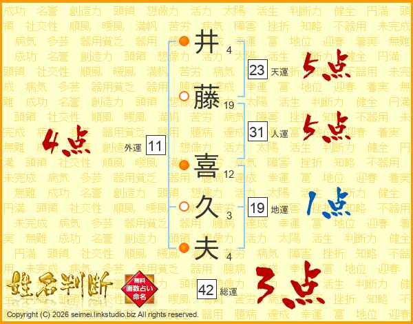 井藤喜久夫さんの天運は23画の5点!