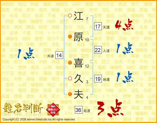 江原喜久夫さんの総運は36画の3点!