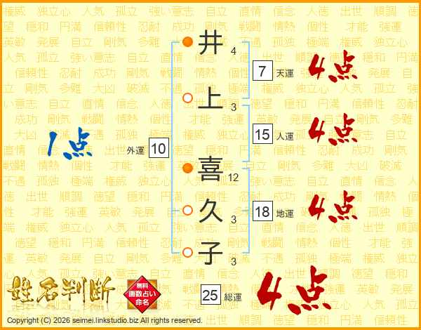 井上喜久子さんの総運は25画の4点!