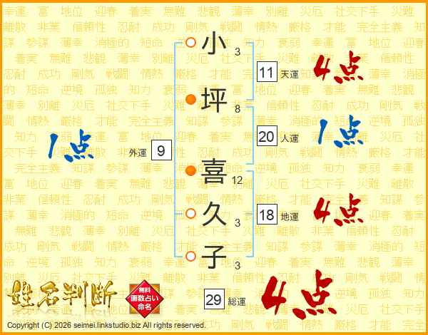 小坪喜久子さんの総運は29画の4点!