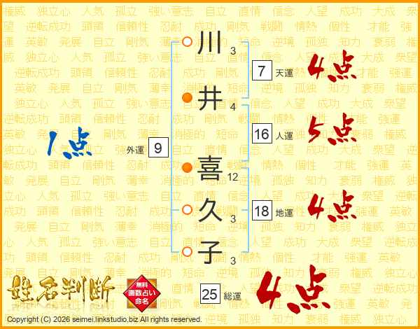 川井喜久子さんの総運は25画の4点!