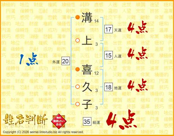 溝上喜久子さんの総運は35画の4点!