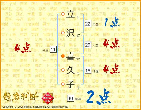 立沢喜久子さんの総運は40画の2点!