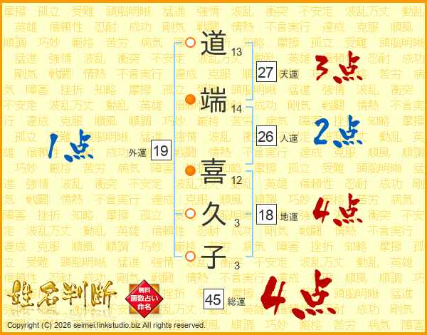道端喜久子さんの総運は45画の4点!