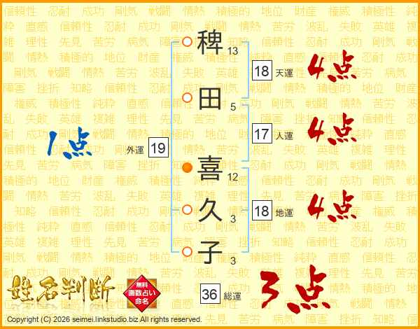 稗田喜久子さんの天運は18画の4点!
