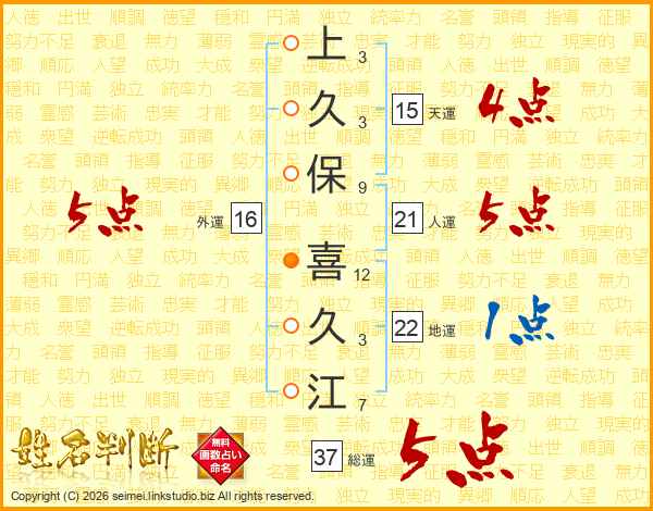 上久保喜久江さんの総運は37画の5点!