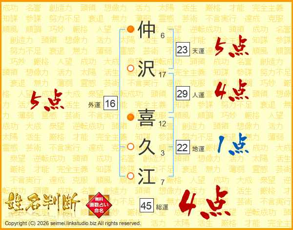 仲沢喜久江さんの天運は23画の5点!