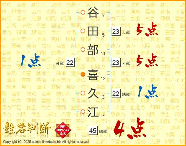 谷(7画)田(5画)部(11画) 喜(12画)久(3画)江(7画)
