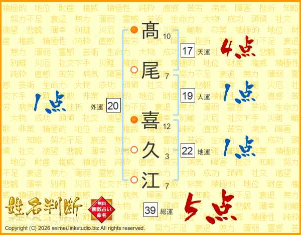髙尾喜久江さんの総運は39画の5点!