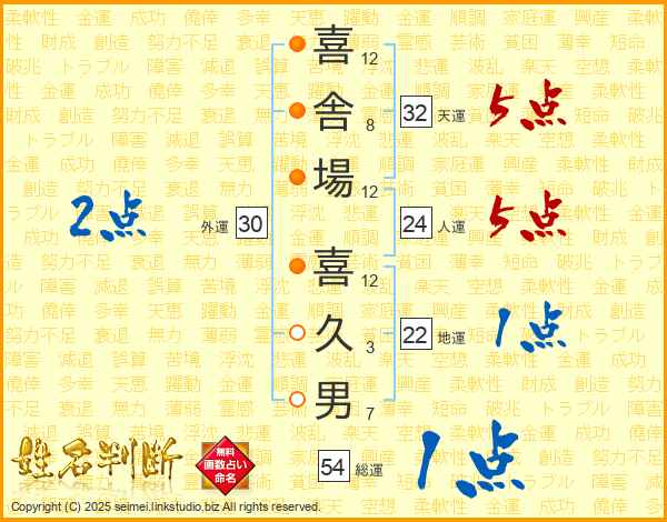 喜舎場喜久男さんの総運は54画の1点!