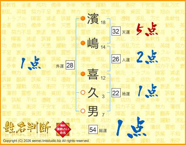 濱嶋喜久男さんの天運は32画の5点!