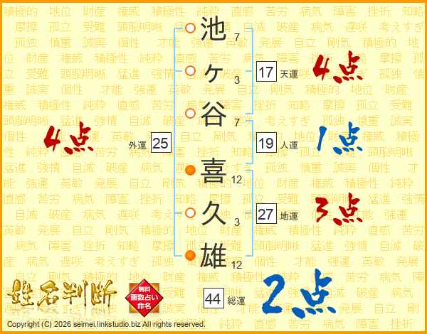 池ヶ谷喜久雄さんの天運は17画の4点!