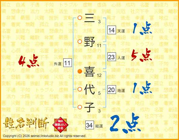 三野喜代子さんの総運は34画の2点!