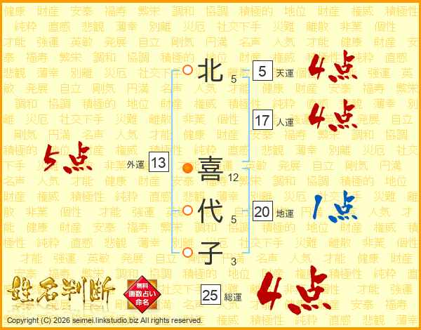 北喜代子さんの総運は25画の4点!