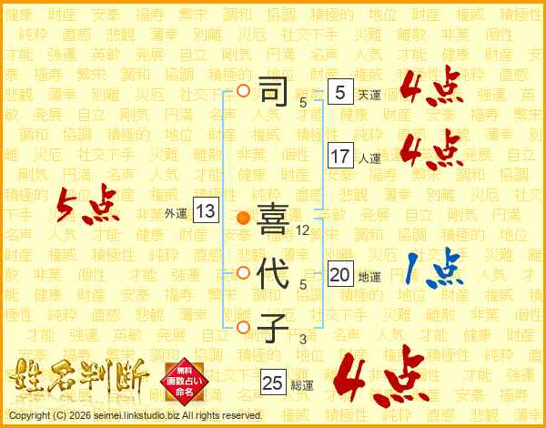 司喜代子さんの総運は25画の4点!