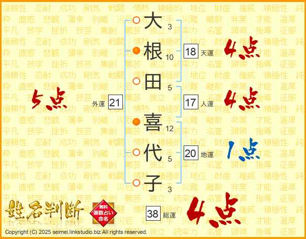 大根田喜代子さんの総運は38画の4点!