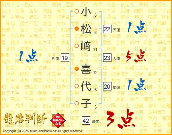 小松﨑喜代子さんの人運は23画の5点!