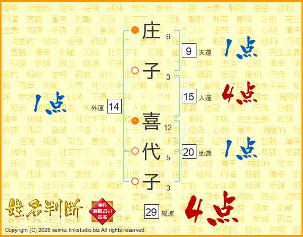 庄子喜代子さんの総運は29画の4点!