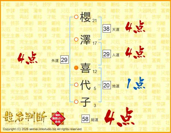 櫻澤喜代子さんの総運は58画の4点!