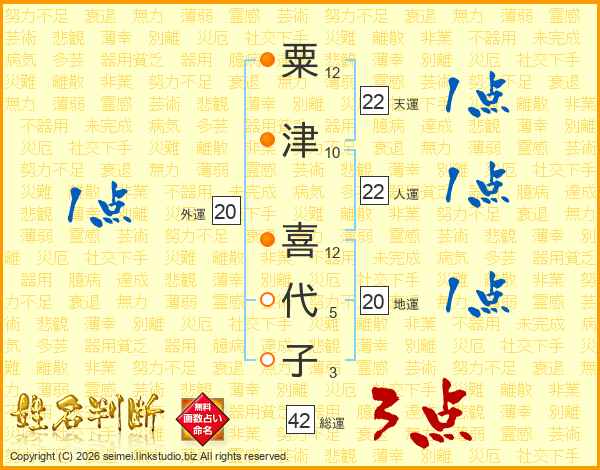 粟(12画)津(10画) 喜(12画)代(5画)子(3画)