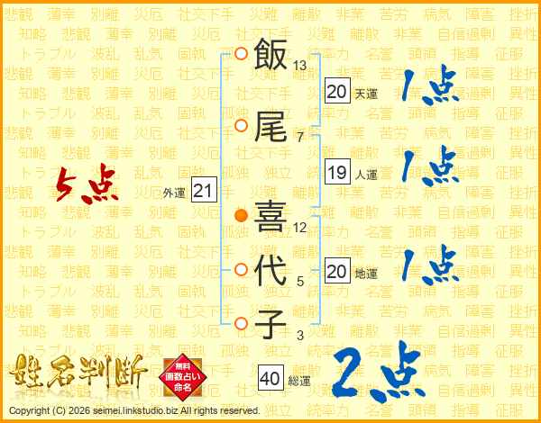飯尾喜代子さんの外運は21画の5点!