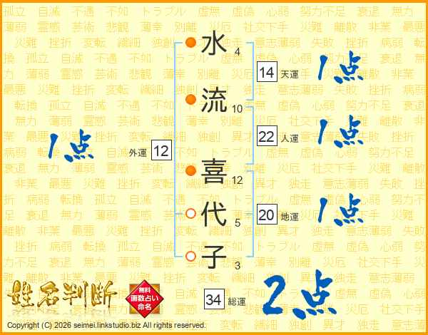 水流喜代子さんの総運は34画の2点!