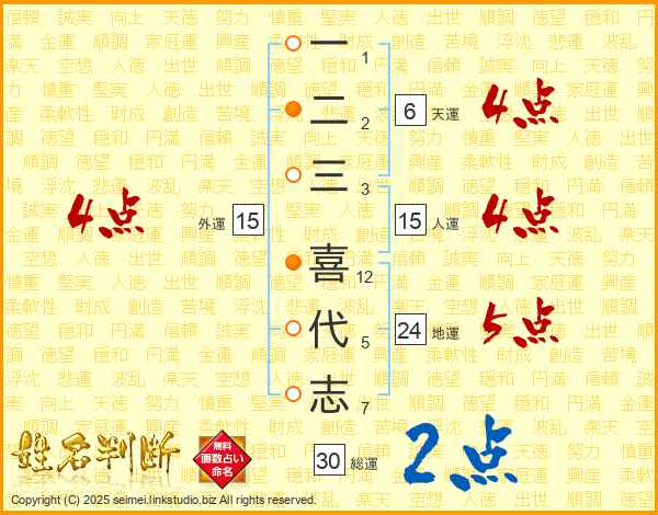 一二三喜代志さんの総運は30画の2点!