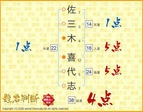 佐三木喜代志さんの総運は38画の4点!