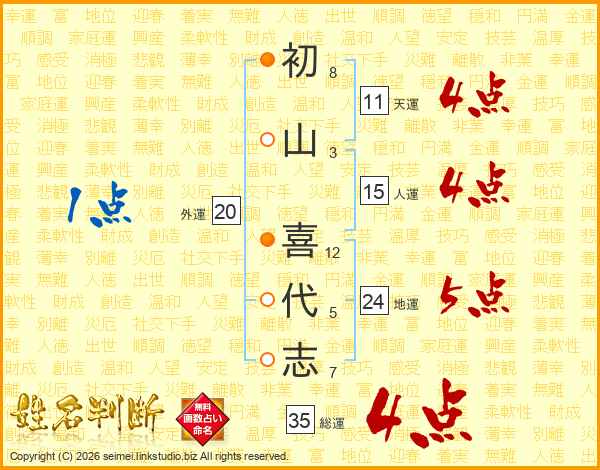 初山喜代志さんの総運は35画の4点!