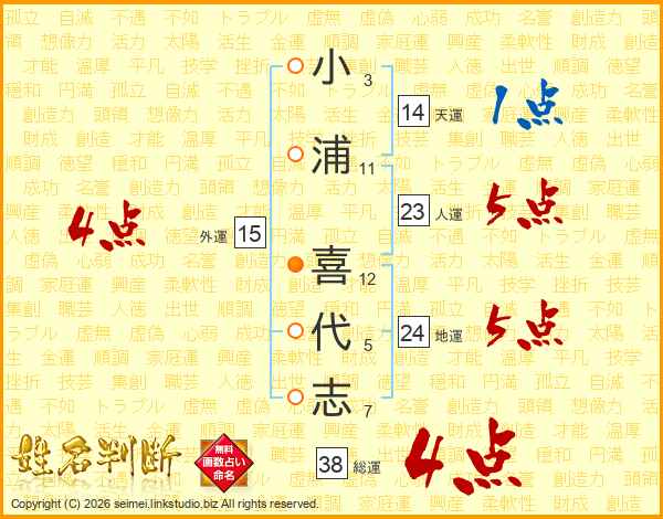 小浦喜代志さんの総運は38画の4点!
