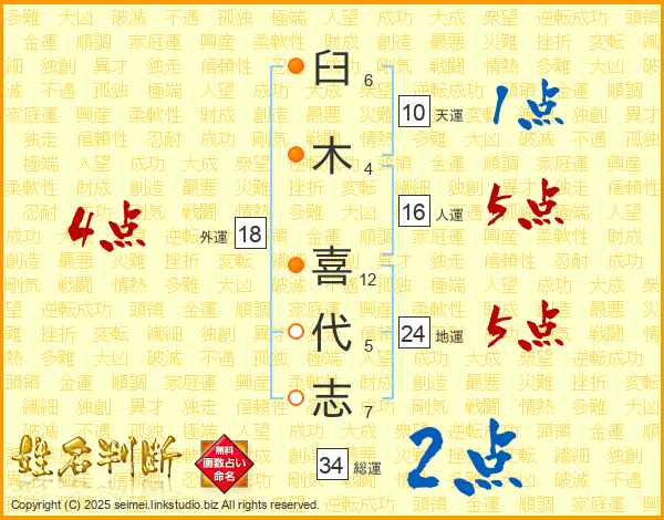 臼木喜代志さんの総運は34画の2点!
