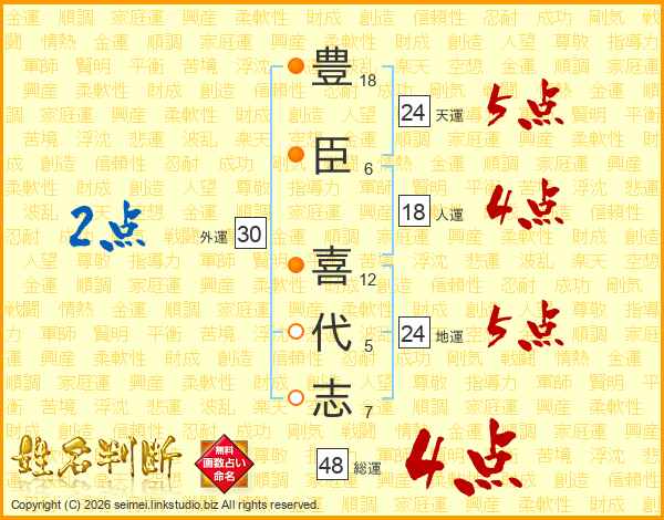 豊臣喜代志さんの総運は48画の4点!