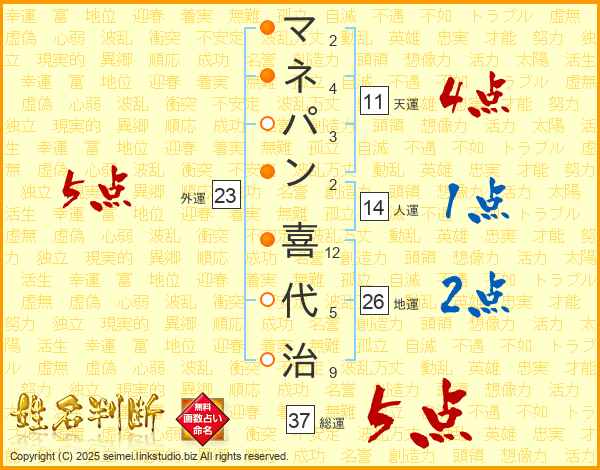 マネパン喜代治さんの総運は37画の5点!