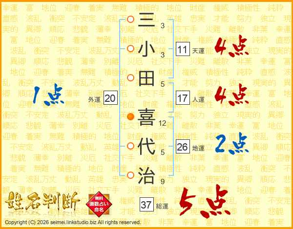 三小田喜代治さんの総運は37画の5点!