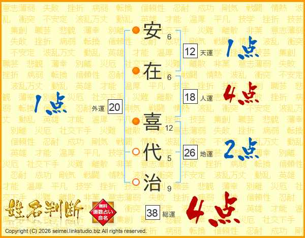 安在喜代治さんの総運は38画の4点!