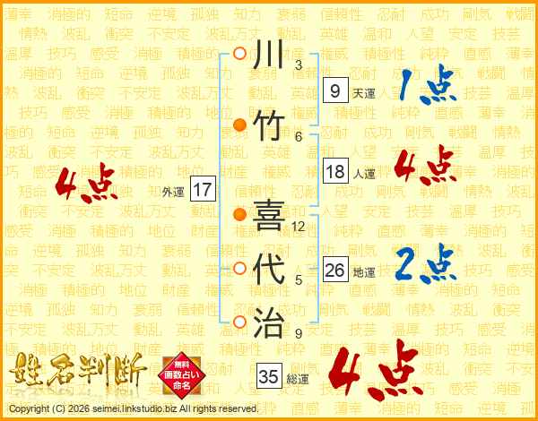 川竹喜代治さんの地運は26画の2点!