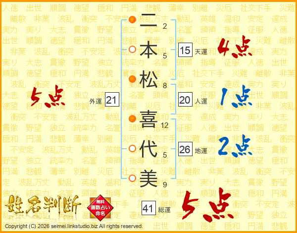 二本松喜代美さんの総運は41画の5点!