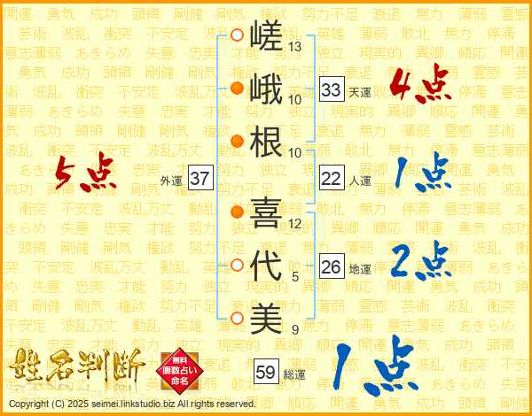 嵯峨根喜代美さんの天運は33画の4点!