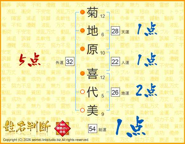 菊地原喜代美さんの総運は54画の1点!