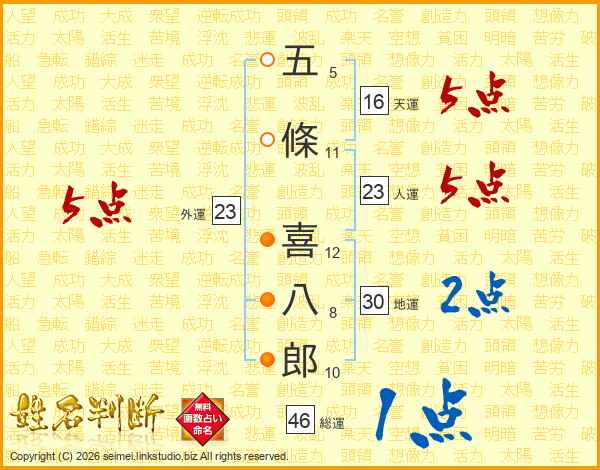 五條喜八郎さんの総運は46画の1点!