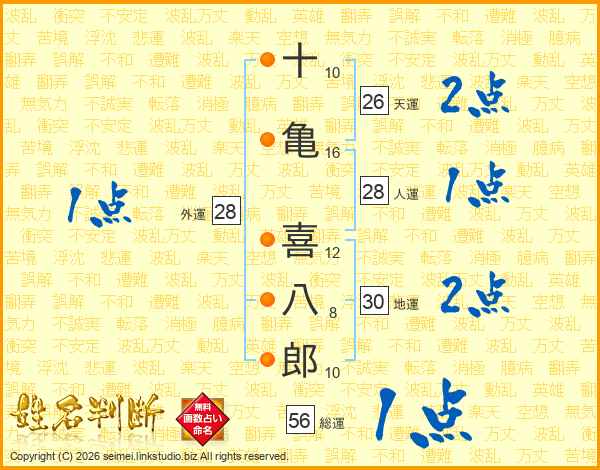 十亀喜八郎さんの天運は26画の2点!