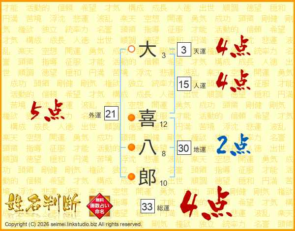 大喜八郎さんの総運は33画の4点!